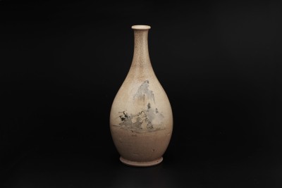 江戸時代・文政 7年(1824)に、大聖寺城下の豪商であった豊田伝右衛門が、再興九谷の窯を大聖寺藩領九谷村に開窯したのが吉田屋の始まりである。この皿は、当時吉田屋窯にて製作された器であり、四彩の鮮やかな色彩と、青手古九谷風のデザインが特徴的な、吉田屋青手皿の逸品といえる。器の見込を斜めに二分し、黄彩を塗り埋めた地に、紫と紺青で紫陽花の花を表現する。見込半分に緑彩を塗り埋め、垣根のように描くことで、紫陽花の花がより際立つ視覚効果があり、実に見事な構図といえる。器の周囲は黄彩の地に矢羽根文をめぐらせ、縁に銹釉を施す。器の裏側は、緑地に松葉のような線描きと、高台脇には櫛歯文をめぐらす。高台内は白磁とし、中央に緑地角福銘を記す。この皿は、四彩の色絵の発色も非常に良く、構図や色彩感覚など、どれも吉田屋の魅力が随所に見て取れる優品であるといえる。