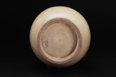 江戸時代・文政 7年(1824)に、大聖寺城下の豪商であった豊田伝右衛門が、再興九谷の窯を大聖寺藩領九谷村に開窯したのが吉田屋の始まりである。この皿は、当時吉田屋窯にて製作された器であり、四彩の鮮やかな色彩と、青手古九谷風のデザインが特徴的な、吉田屋青手皿の逸品といえる。器の見込を斜めに二分し、黄彩を塗り埋めた地に、紫と紺青で紫陽花の花を表現する。見込半分に緑彩を塗り埋め、垣根のように描くことで、紫陽花の花がより際立つ視覚効果があり、実に見事な構図といえる。器の周囲は黄彩の地に矢羽根文をめぐらせ、縁に銹釉を施す。器の裏側は、緑地に松葉のような線描きと、高台脇には櫛歯文をめぐらす。高台内は白磁とし、中央に緑地角福銘を記す。この皿は、四彩の色絵の発色も非常に良く、構図や色彩感覚など、どれも吉田屋の魅力が随所に見て取れる優品であるといえる。